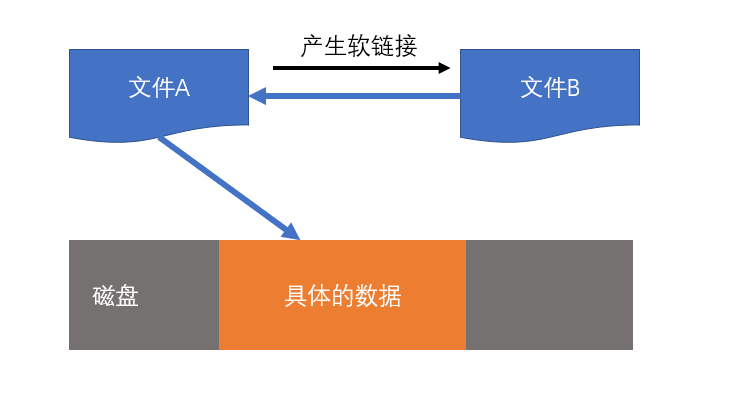 符号链接又称为软连接,如果为某个文件或文件夹 A 创建符号连接 B,则 B 指向 A。