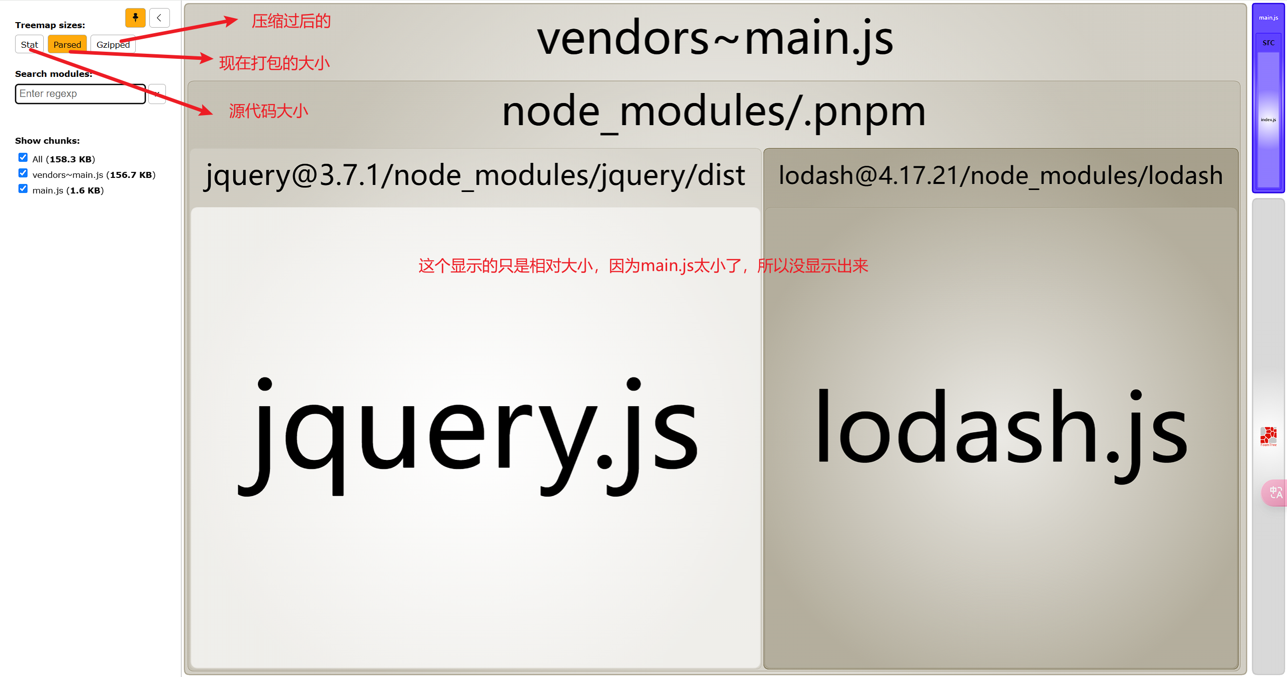 };打包完成之后,会自动弹出来一个分包的体积页面。