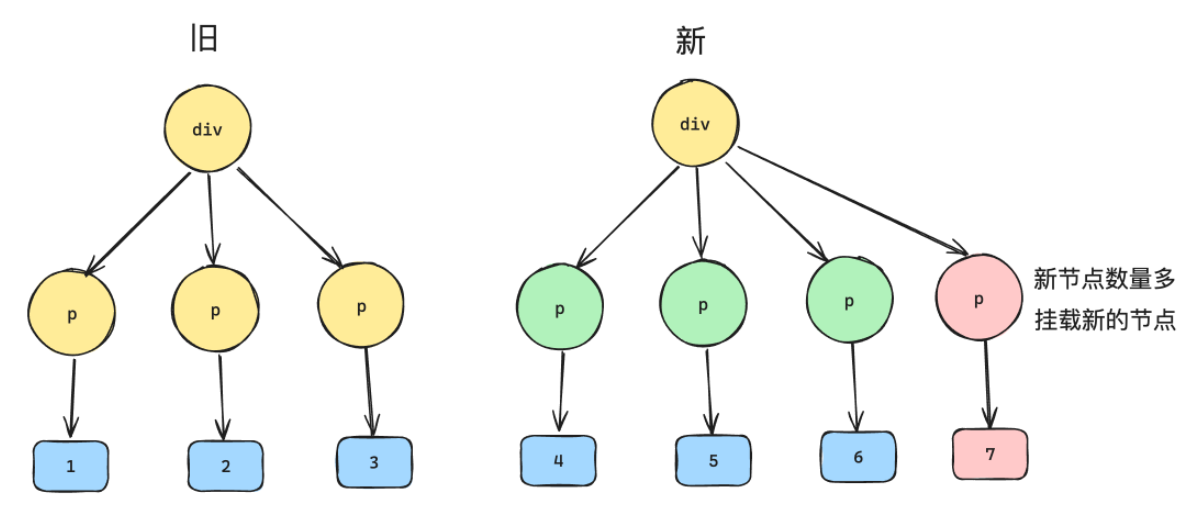 - 挂载所有新的子节点,需要 3 次 DOM 的添加操作