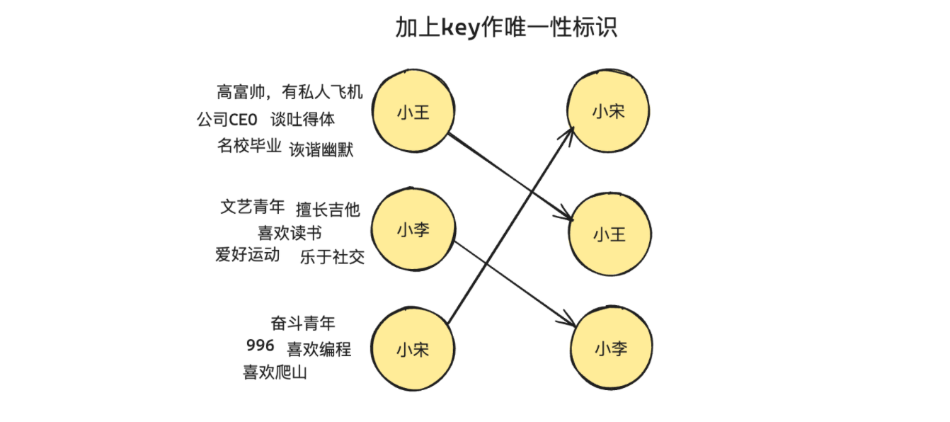 因此在这个时候,最好的方式就是加上 key,让新旧节点能够精准的对应上。